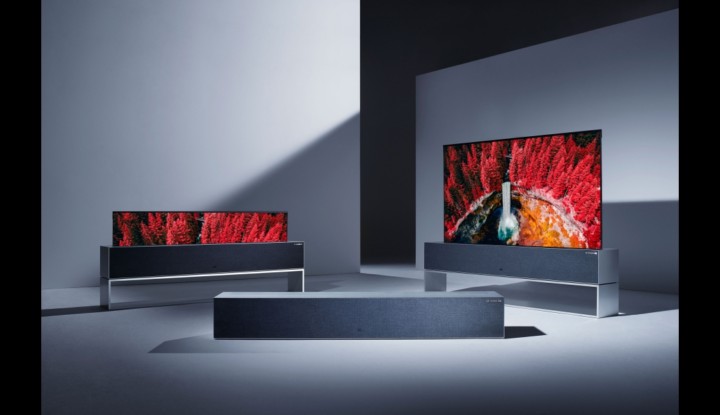 Első blikkre az alkalmatosság tulajdonképpen egy mozivászon és egy békebeli redőny inverzének szerelemgyereke is lehetne, ami csak úgy mellékesen az LG második generációs Alpha 9-es intelligens processzorával van ellátva, amely támogatja az Amazon Alexáját csak úgy, mint a Google Assistant-et.