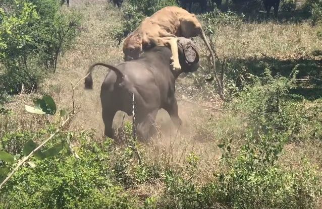 Általában a kafferbivaly szerepel az állatok királyának étlapján, most azonban fordult a kocka.