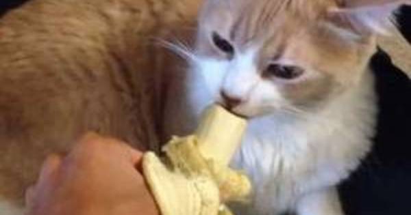 A videóban a macskája, akit Maónak hívnak, banánt rágcsál nagy elánnal.