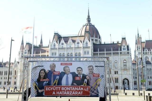 Az Együtt bontanák le a határzárat feliratú plakát közepén Soros György látható, aki legutóbb Davosból “üzent hadat” Magyarországnak, “bejelentette, hogy részt fog venni a magyar választási kampányban” – fejtette ki a fideszes politikus, aki szerint Soros célja évi egymillió bevándorló betelepítése Afrikából és a Közel-Keletről, a határzár lebontása és az, hogy Magyarország is bevándorlóország legyen. Ebben szövetségesei a magyar ellenzéki pártok vezetői, ők láthatók még a plakáton – mondta.
