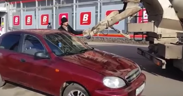 Betonnal öntötte ki felesége kocsiját a dühös férj