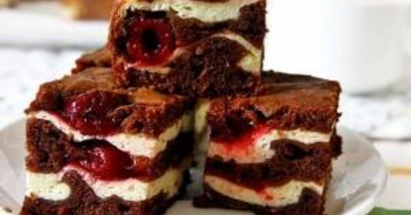 Brownie hullámok, túróval, meggyel