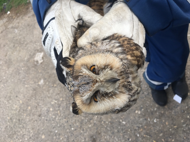 A helyi kollégák egy dobozt vittek a helyszínre, amibe óvatosan belehelyezték a „kis fülest”. A Hortobágyi Madárpark – Madárkórház Alapítvány munkatársai a védett madarat elszállították.