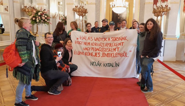 Az oktatás helyzetének javításáért vasárnap tüntetők többek között egy Novák Katalintól származó idézetet vittek a köztársasági elnök hivatalához.