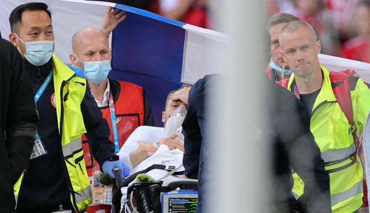 Eriksen újraélesztése – egy nem sokkal későbbi Reuters-fotó tanúsága szerint – sikeres volt, a játékos a homlokát fogva, nyitott szemmel, a sajtóhírek alapján stabil állapotban hagyta el az arénát, és szállították kórházba.