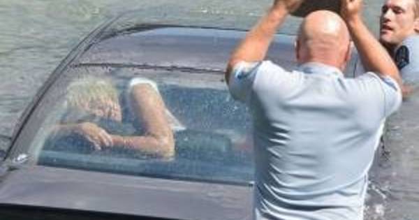 Drámai fotók a süllyedő autóba szorult nő mentéséről