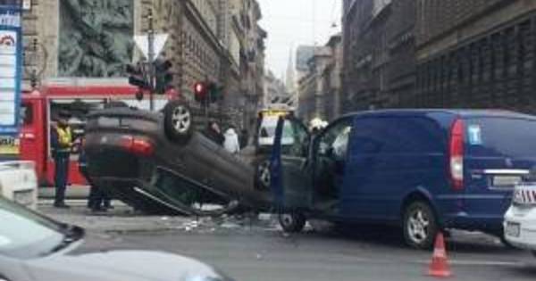 Fejtetőre áll ez a VW, miután ütközött egy Mercedes Vitóval.