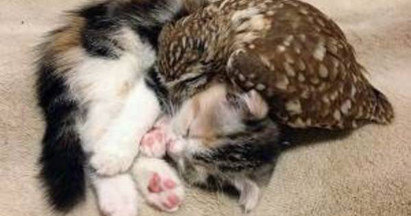 Bizony, ott megfordulnak az éjszakai madarak, és itt ismerkedett össze Fuku a bagoly az ottani kiscicával, Marimoval.