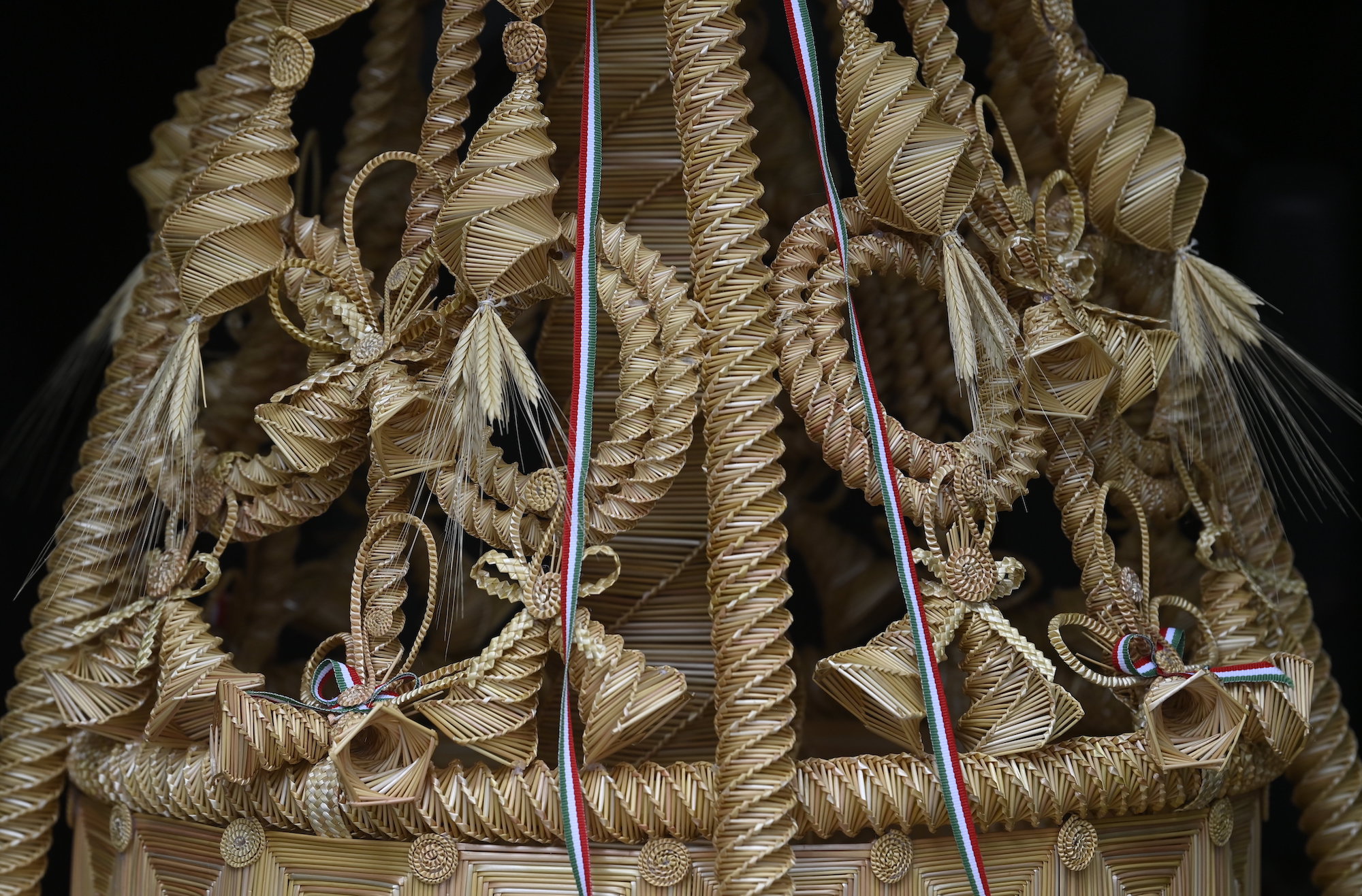 Csaknem egy hónapon át fonták Hajdúnánáson azt a mintegy ezer szalmaszálból készült aratókoszorút, amelyet hétfőn ünnepélyes keretek között helyeztek el a budapesti Szent István Bazilikában – írja az MTI.