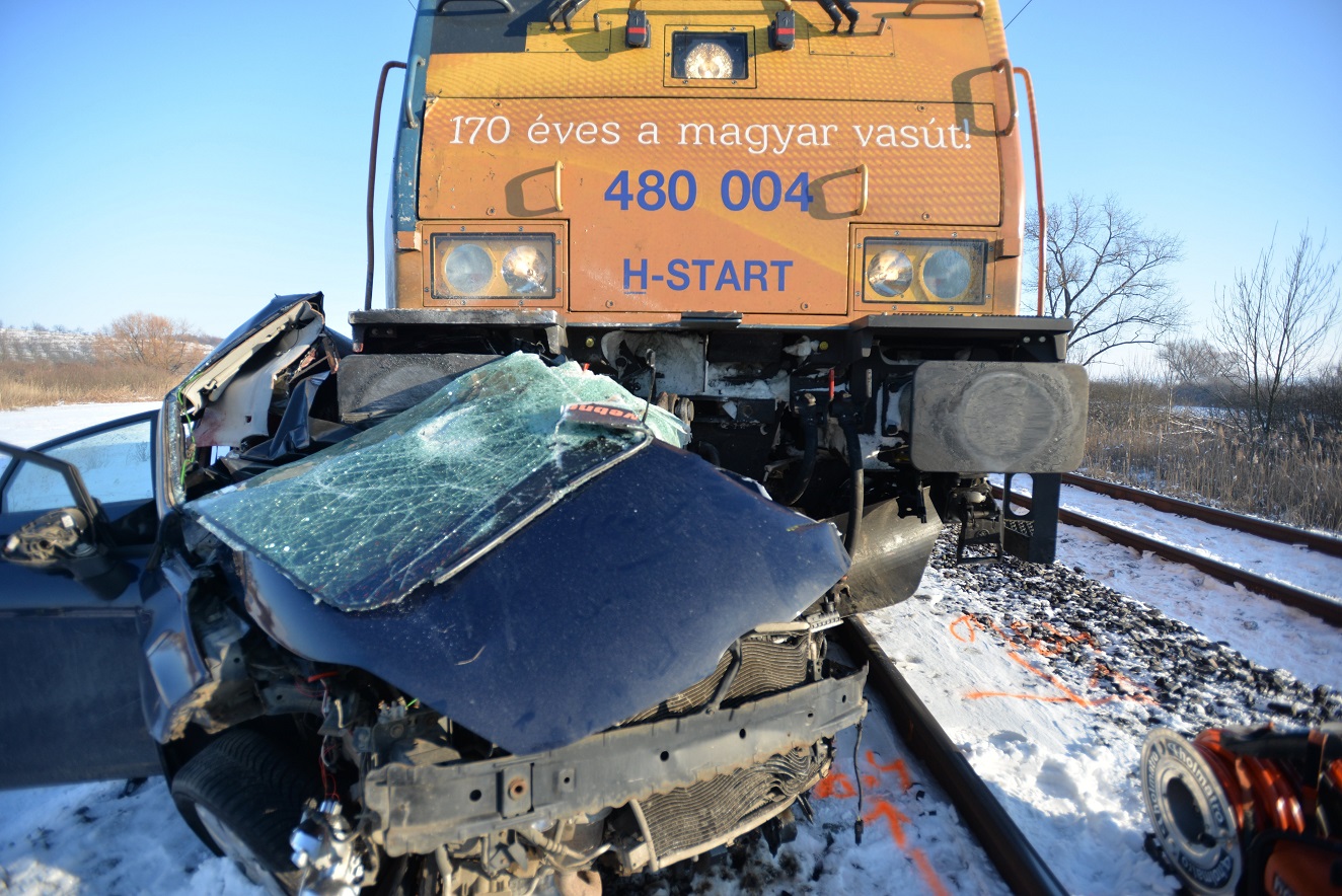 Ketten meghaltak, amikor egy személyautó és egy vonat ütközött össze csütörtökön egy vasúti átjáróban Galgahévíznél.