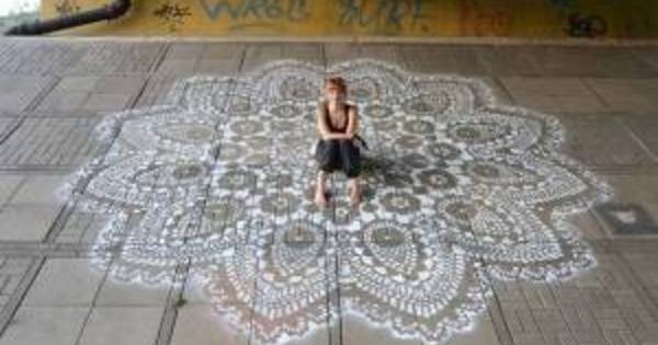 Egy művész, aki csipkemintával díszíti a közterületeket