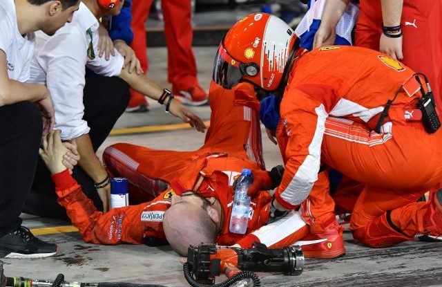 Viszont Kimi elhagyta a bokszot és elgázolta az egyik szerelőt, Francesco Cigarinit, akit azonnal kórházba szállították. Mint ahogyan a Ferrari közleményéből kiderült, lábszártörést szenvedett.