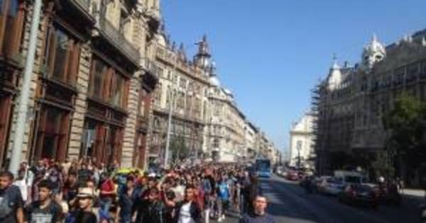 Péntek délután több száz migráns gyalog elindult a budapesti Keleti pályaudvartól.