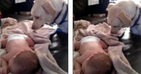 Szülői feladatokat is ellát az alábbi szívet melengető videón látható labrador.