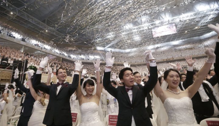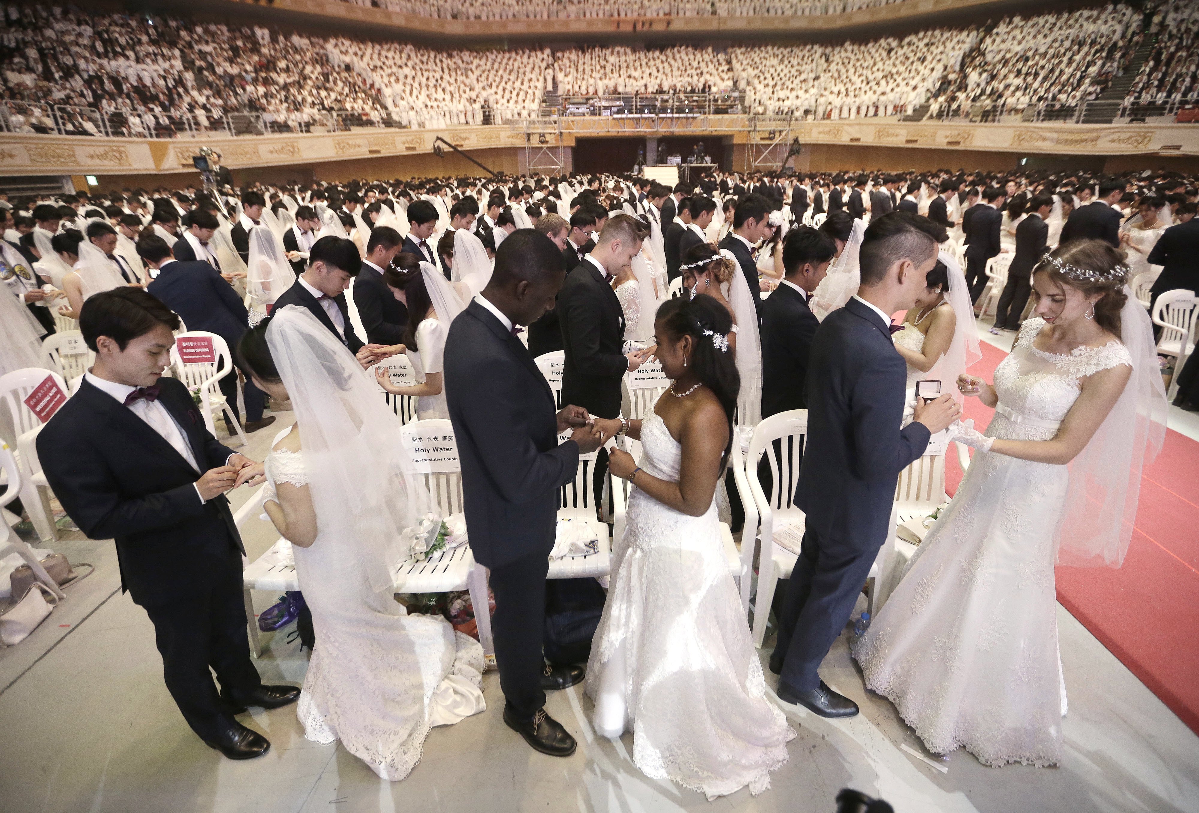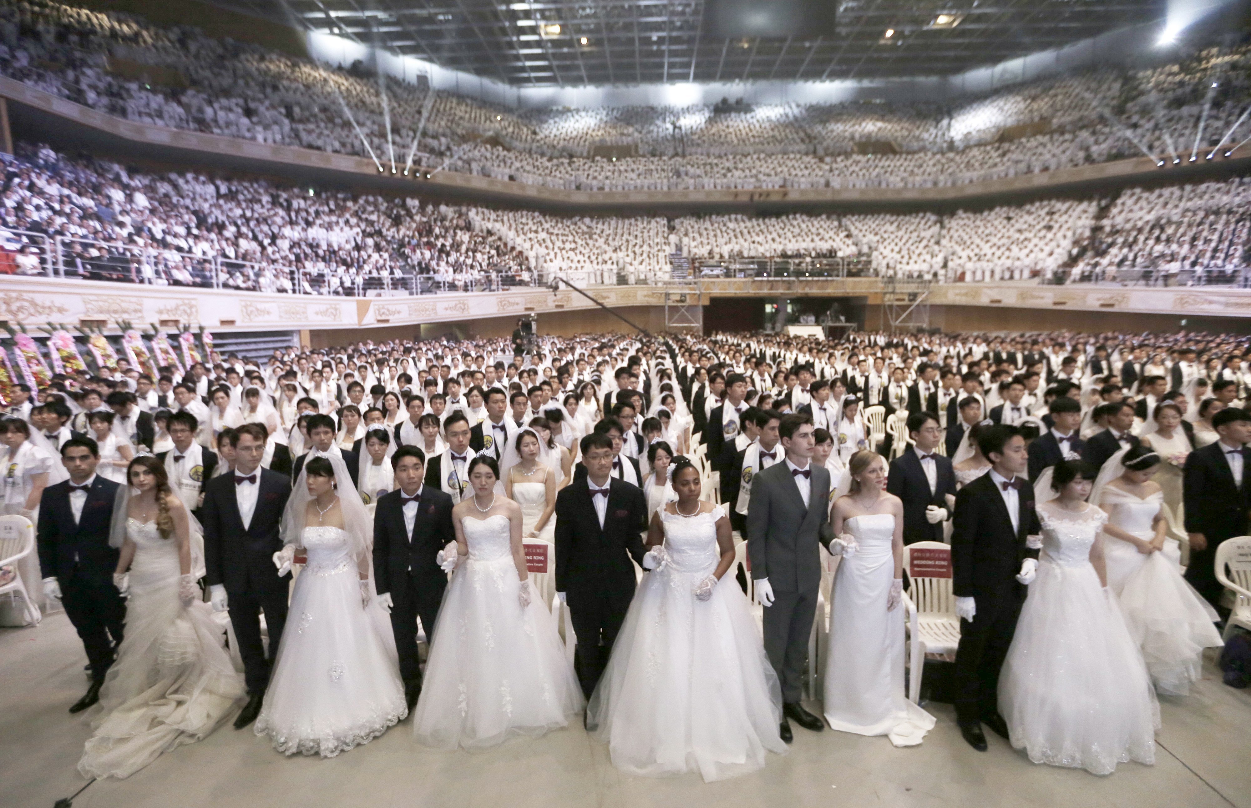 Mintha koncertet tartottak volna, annyian zsúfolódtak össze a dél-koreai Csung Sim Béke Világközpontban 2018. augusztus 27-én, hétfőn. Ezúttal azonban nem egy neves előadó, énekes lépett fel, hanem az a nagyjából 8000 ember, aki élete egyik legfontosabb pillanatához ért. A helyszínre a világ minden tájáról érkeztek párok, akik így egyszerre mondhatták ki a boldogító igent – hasonló menyegzőre talán nem is volt még példa.