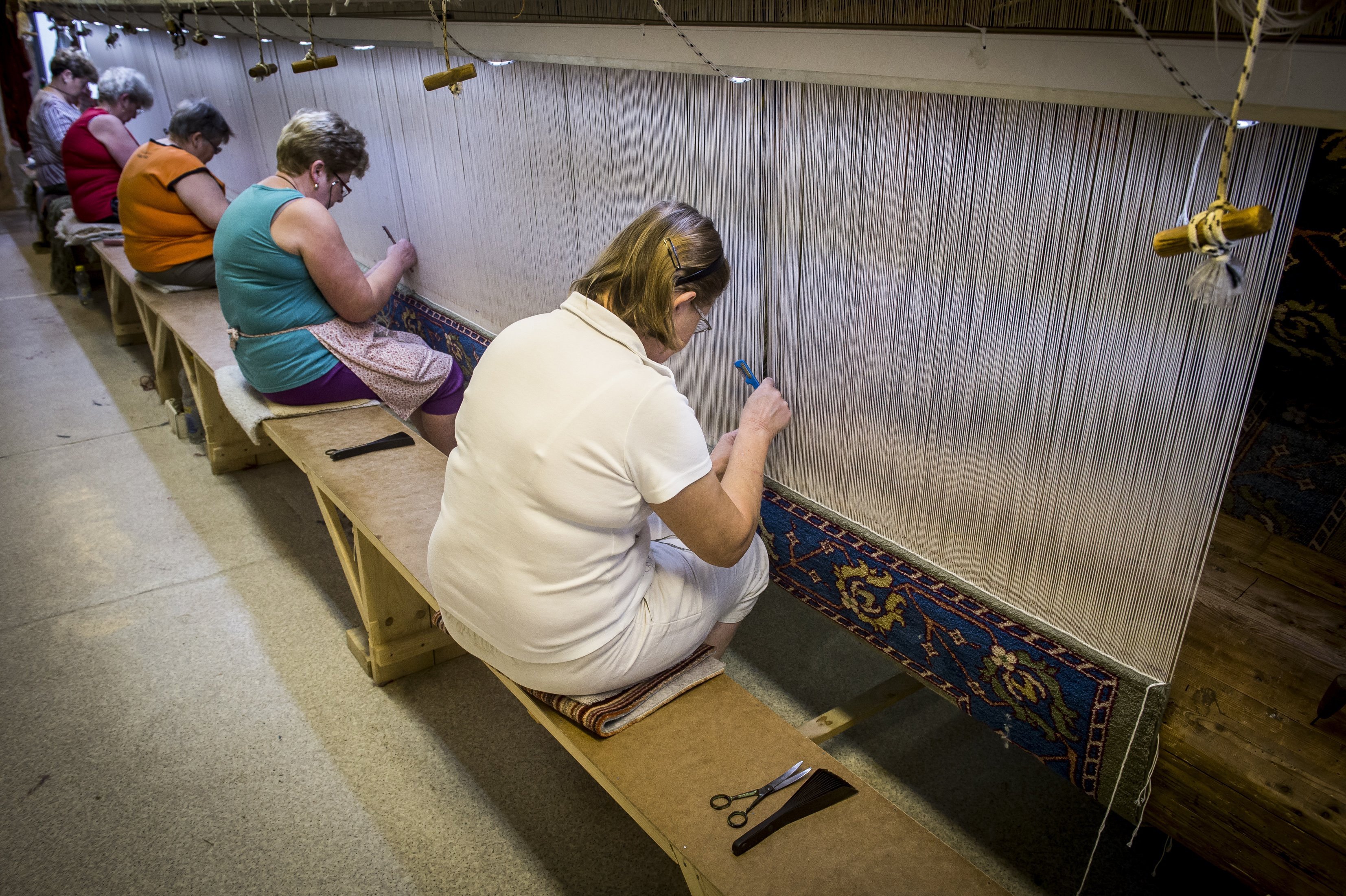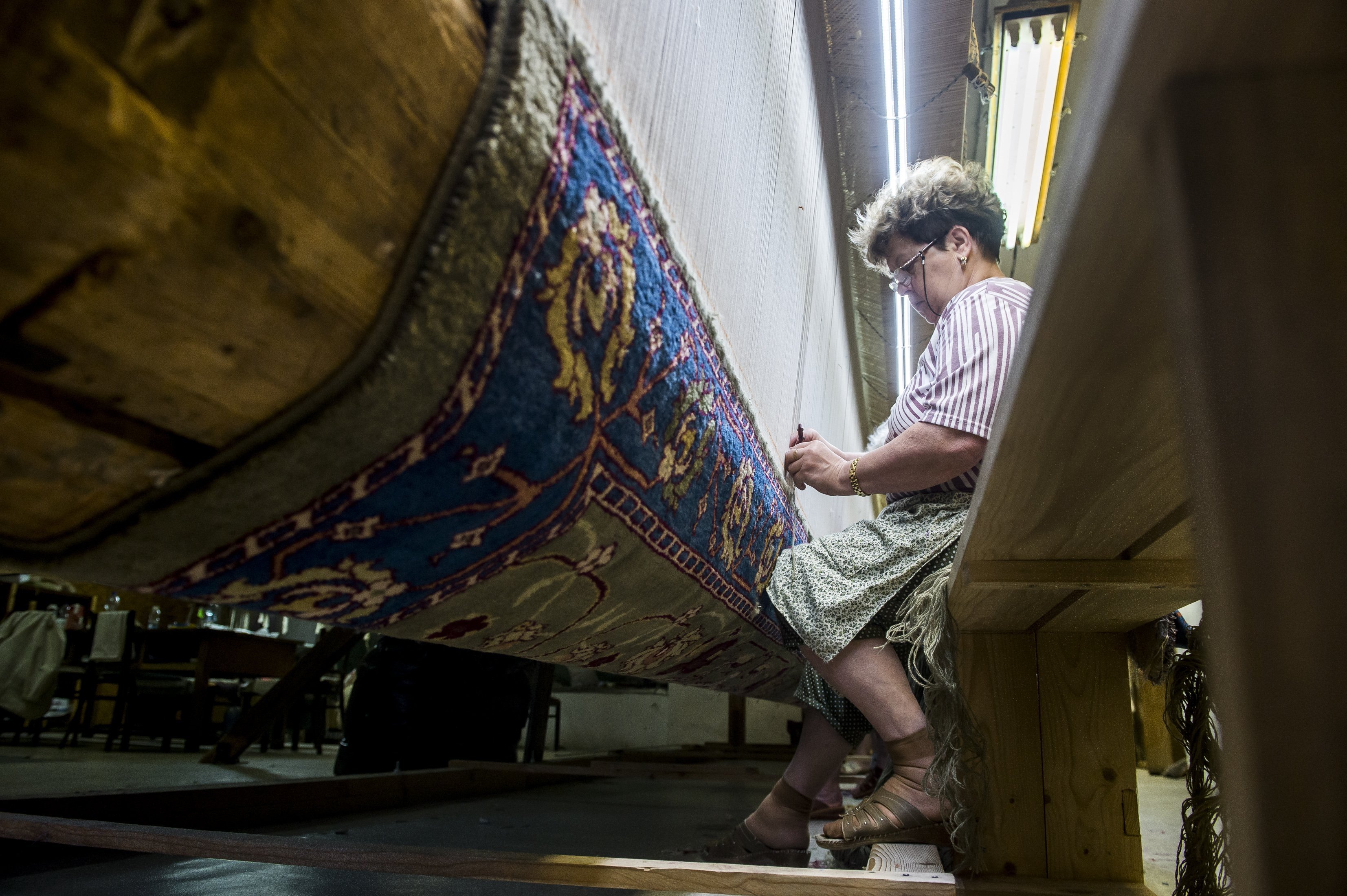 A 155,5 négyzetméteres, tízmázsás szőnyeget közel két év alatt készítette el kézi szövéssel az Art-Kelim Kft hét szövőnője. Naponta így öt-hat centit haladtak vele.