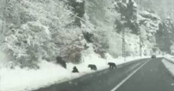 Az anyamedve és három bocsa az úton szaladgált, videóra is vették.