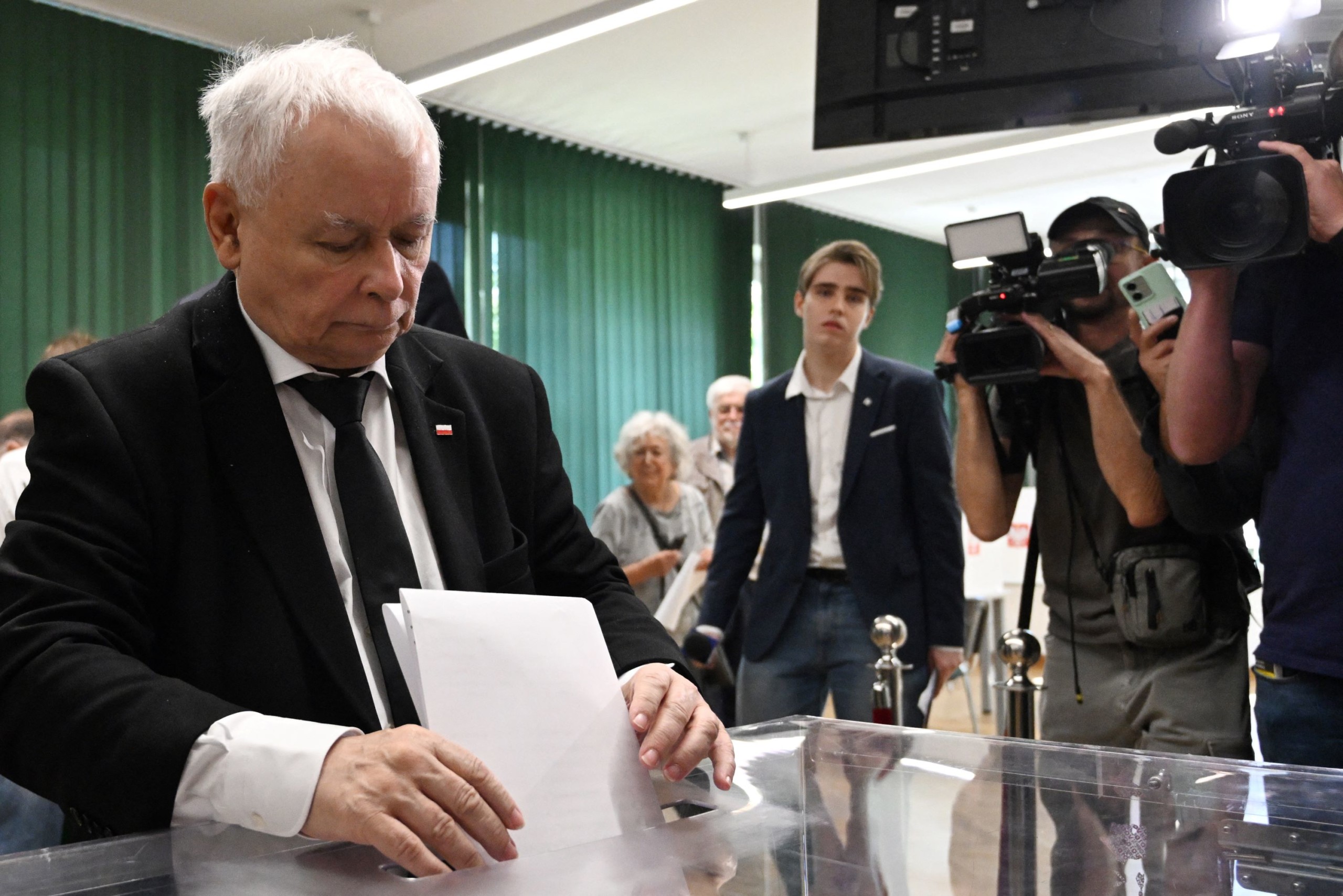 Jaroslaw Kaczynski, a legnagyobb jobboldali ellenzéki párt, a Jog és Igazságosság (PiS) vezetője, volt lengyel miniszterelnök leadja szavazatát egy szavazóhelyiségben az európai parlamenti választáson Varsóban 2024. június 9-én. Fotó: AFP