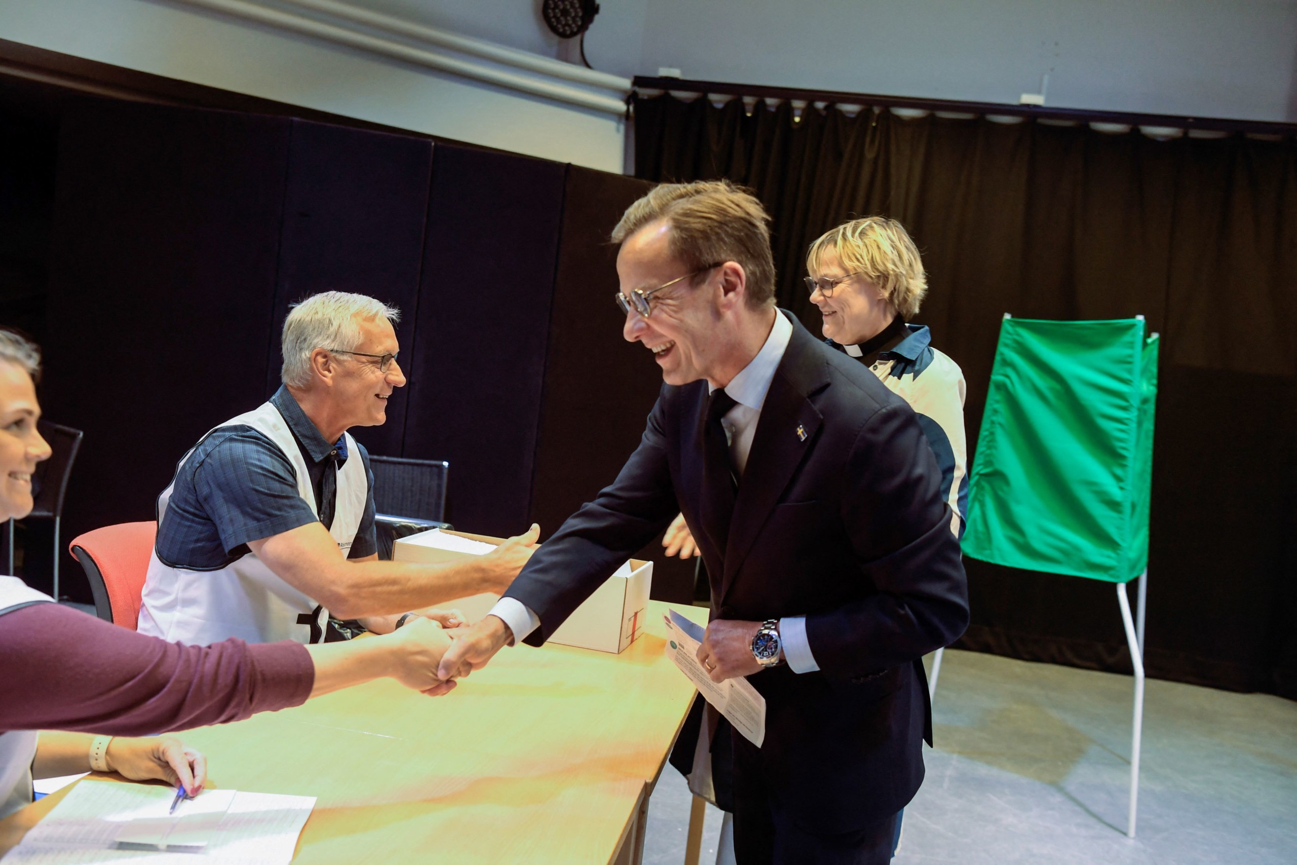 Ulf Kristersson svéd miniszterelnök és felesége, Birgitta Ed szavaz az európai parlamenti választáson a svédországi Strangnas városában lévő szavazóhelyiségben 2024. június 9-én. Fotó: AFP
