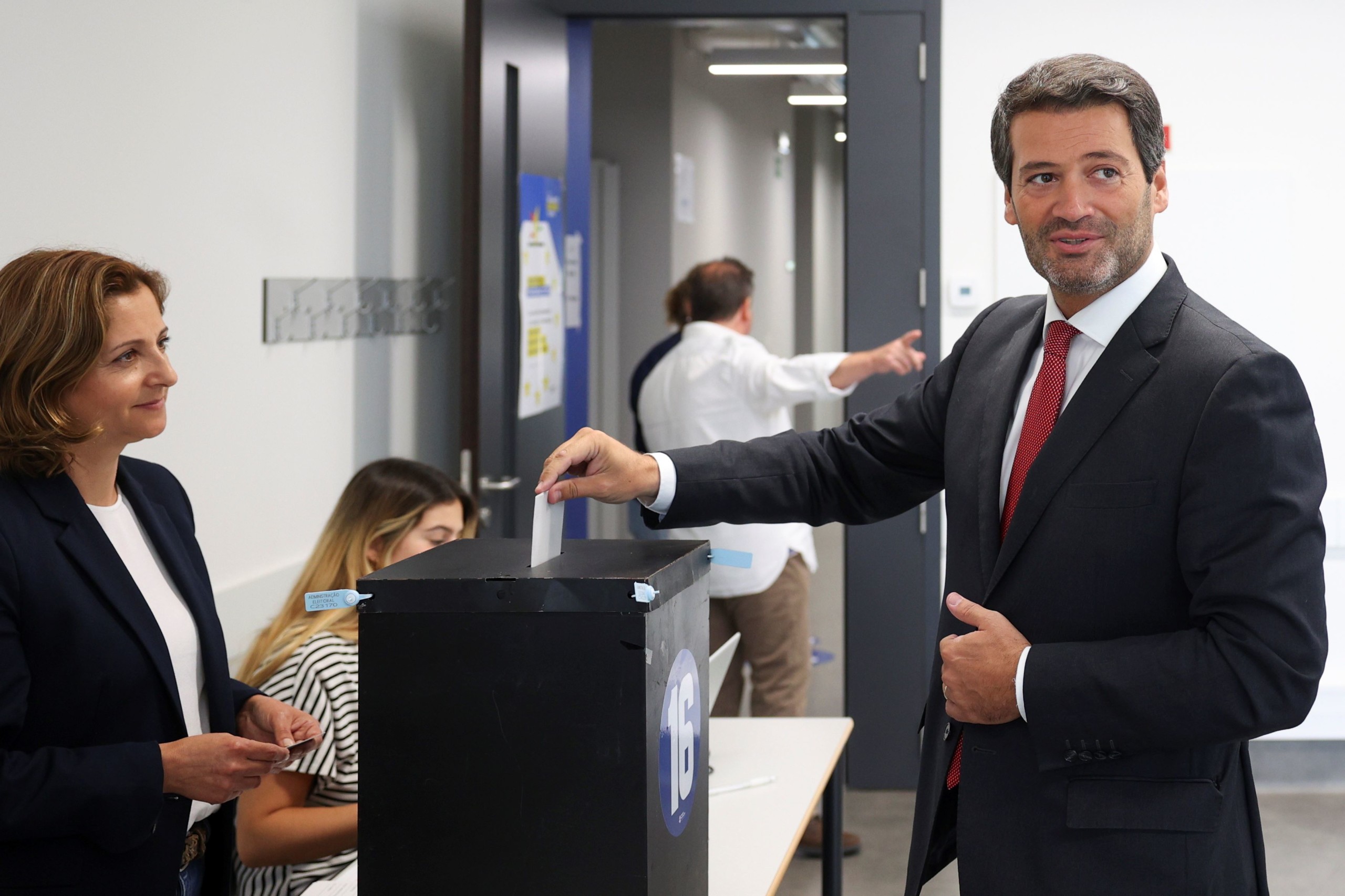 André Ventura, a Chega párt elnöke leadja szavazatát az európai parlamenti választásokon Lisszabonban 2024. június 9-én. Fotó: MTI/EPA/LUSA/Antonio Cotrim