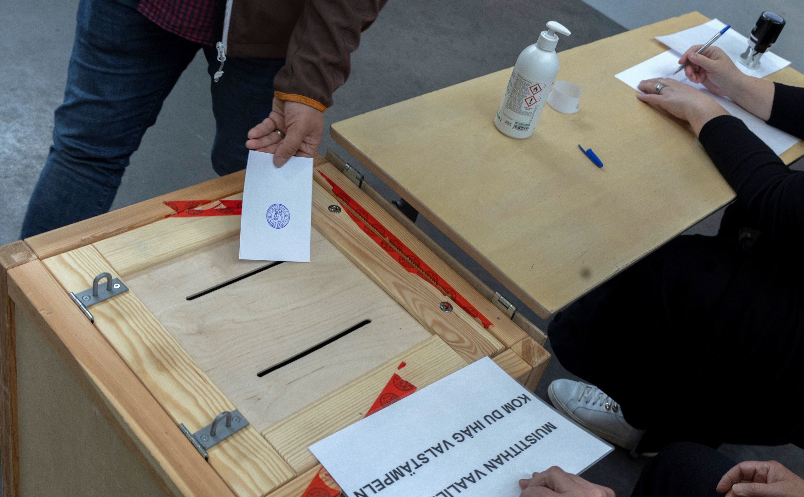 Férfi voksol az európai parlamenti választásokon egy helsinki szavazóhelyiségben 2024. június 9-én. Fotó: MTI/EPA/COMPIC/Mauri Ratilainen
