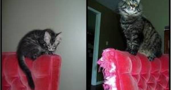 Felnőtt macskáikkal fotózták újra a gazdik a cicák kölyökkori képeit.