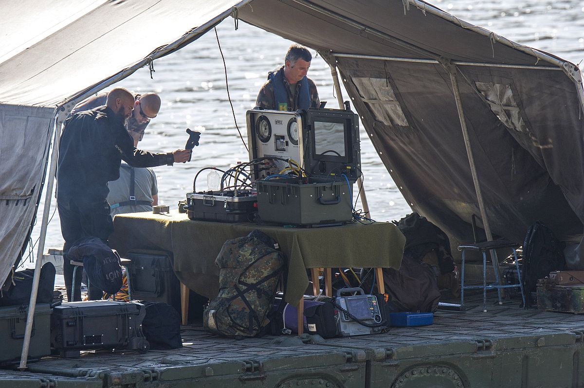 Mintegy harminc tűzszerész a koordináták alapján egy aknamentesítő hajóról keresik a “bombát”. A kutatást nehezíti, hogy az érintett szakaszon a Duna mélysége kétszerese az átlagosnak. A folyó sodrása erős és a látótávolság a “nullával” egyenlő, vagyis a búvárok csak tapintással képesek tájékozódni.