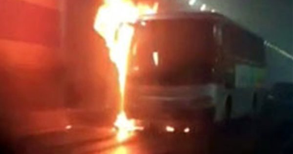 Útközben benzint locsolt szét a buszban, és lángra lobbantotta.