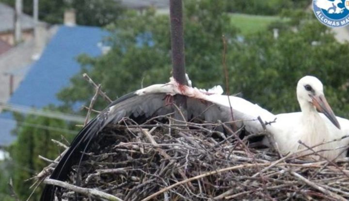Felnyársalta a gólya szárnyát a villámhárító Abaújszántón