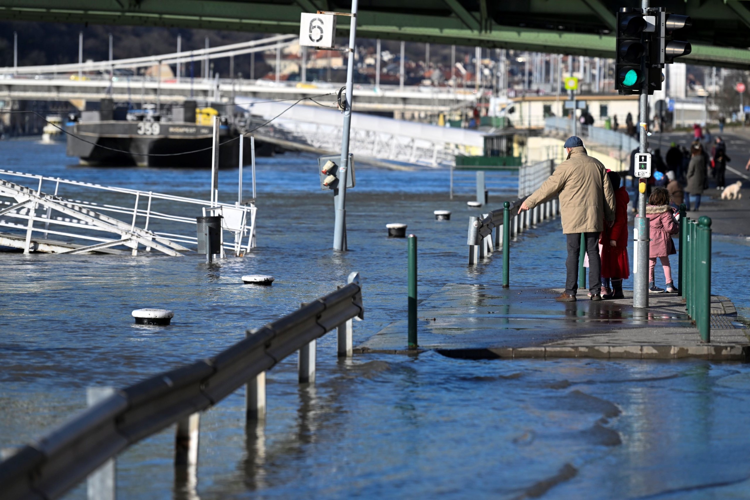 Fotókon az áradó Duna Budapesten: 700 centinél várható a tetőzés