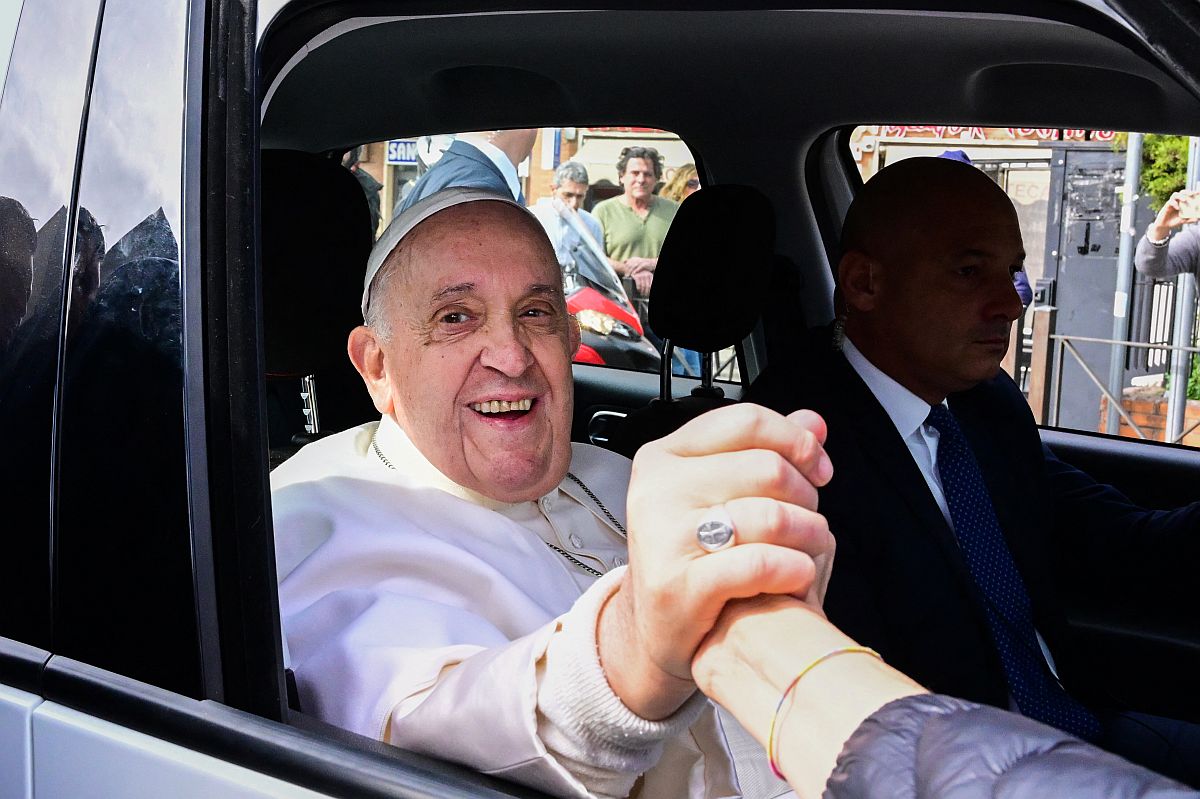 „Még élek” – kiáltotta jókedvűen, viccelődve az embereknek szombaton Ferenc pápa, akit szerdán légúti gyulladás tüneteivel szállították kórházba. A 86 éves egyházfőt a Vatikán közelében lévő Gemelli-klinikán kezelték, ahol antibiotikumokat kapott, és a légzési nehézségei miatt alaposabban is kivizsgálták. A Guardian cikke szerint állapota sokat javult, így szombaton elhagyhatta a kórházat. Forrás: MTI. Fotó: Tiziana FABI / AFP
