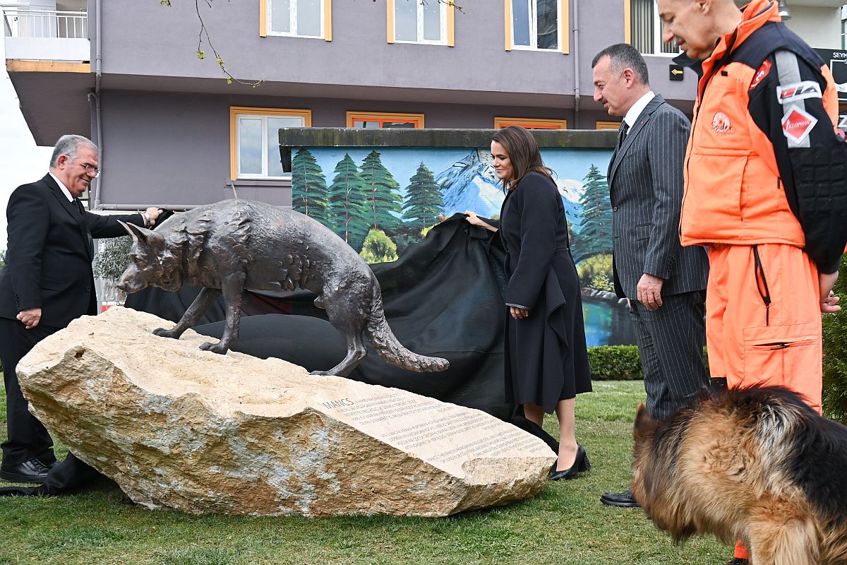 Szobrot állítottak Mancsnak, a világhírű magyar mentőkutyának Törökországban. Mancs az 1999-es izmiti földrengéskor mentett életeket. Az eseményről a Törökországban hivatalos látogatáson tartózkodó Novák Katalin köztársasági elnök számolt be. Forrás: 24.hu. Fotó: MTI/Bruzák Noémi