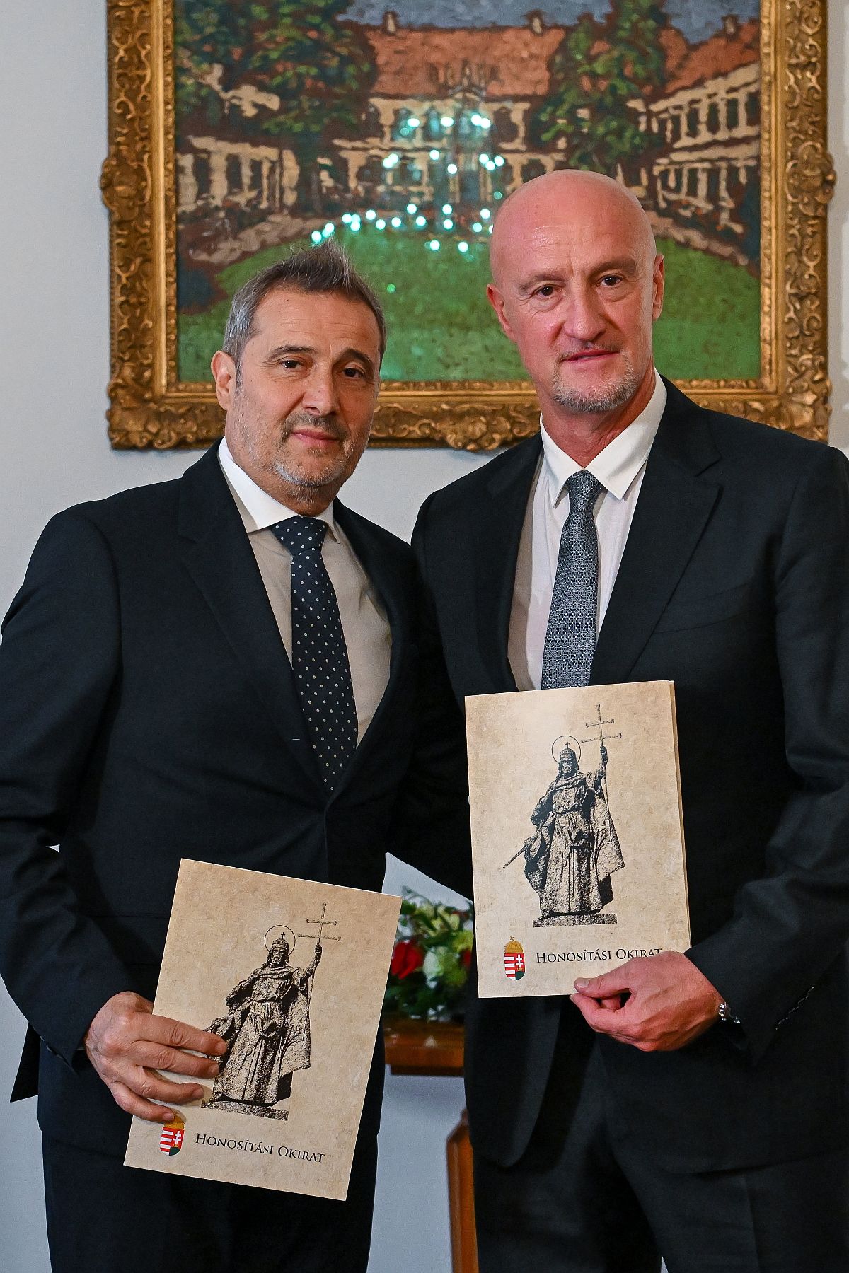 Magyar állampolgársági esküt tett Marco Rossi, a magyar válogatott olasz szövetségi kapitánya és Cosimo Inguscio másodedző kedden Budapesten, Novák Katalin köztársasági elnök jelenlétében. (Szöveg: MTI, fotó: MTI/Illyés Tibor)