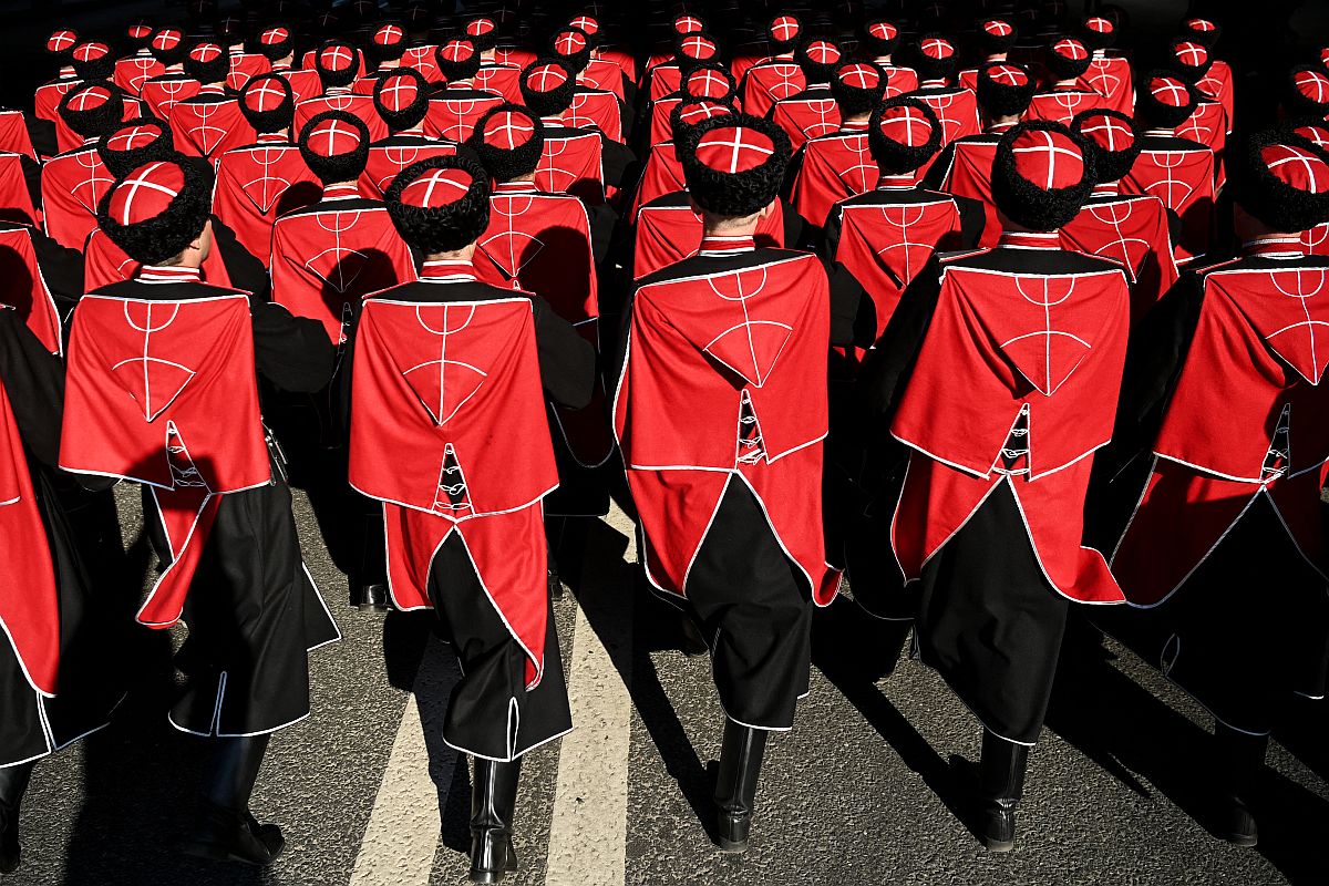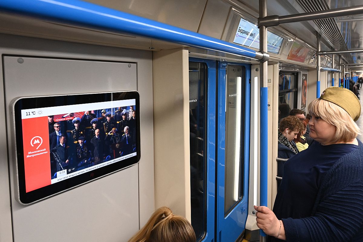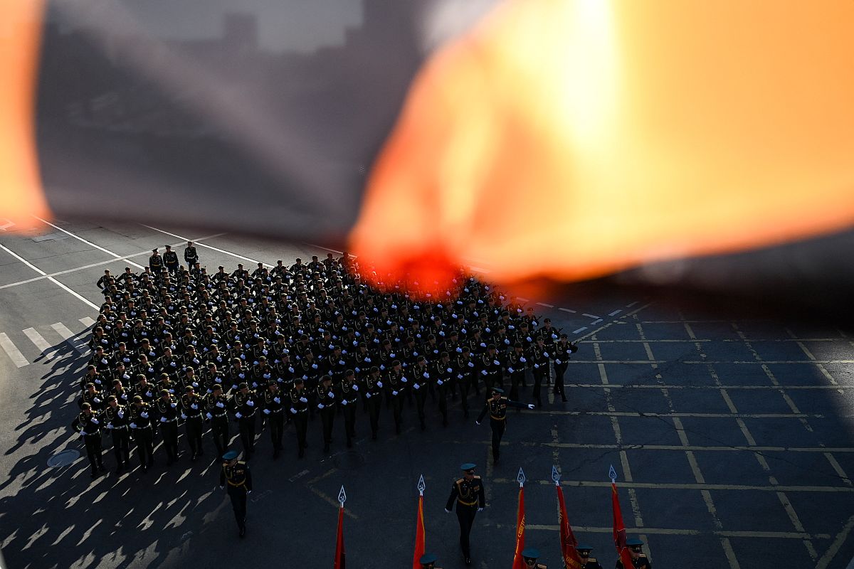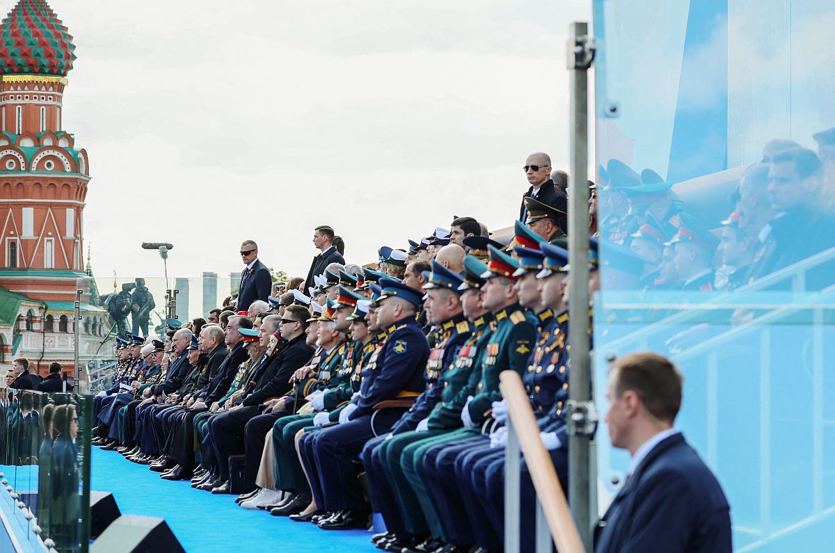 Az orosz elnök rövid beszéde után több ezer katona vonult végig a Vörös téren orosz és szovjet zászlókat lengetve. A hivatalos adatok szerint mintegy nyolcezren voltak, köztük mintegy ötszáz olyan katona, aki Ukrajnában is harcolt.