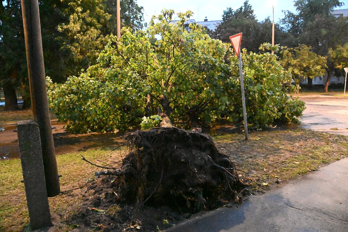 A csapadékot kísérő nagy erejű szél utakra, járművekre, vezetékekre döntött fákat, amelyek eltávolítása ad számottevő munkát a tűzoltóknak kora este óta – tájékoztattak.
