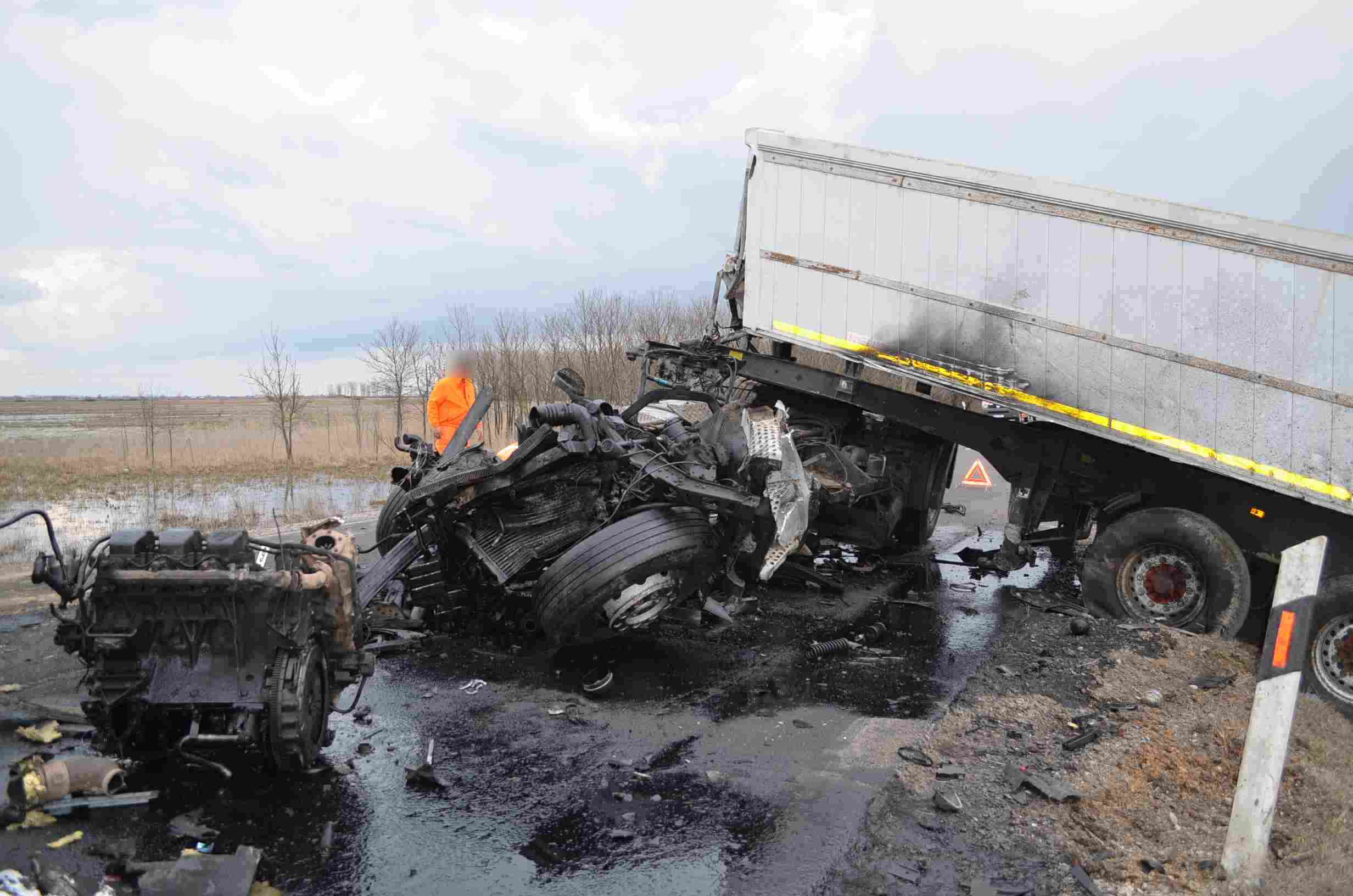 Egy román állampolgár 2018. március 12-én 13 óra 20 perckor az általa vezetett teherautóval Berettyóújfalu felől Mezőpeterd irányába tartott a 42-es számú főúton, írja a police.hu. Nem tartotta a megfelelő követési távolságot, majd amikor az előtte haladó személygépkocsi lassított, a baleset elkerülése érdekében hirtelen balra kormányzott. Ennek eredményeként a 46. kilométerszelvényben frontálisan összeütközött egy szemből közlekedő másik kamionnal.