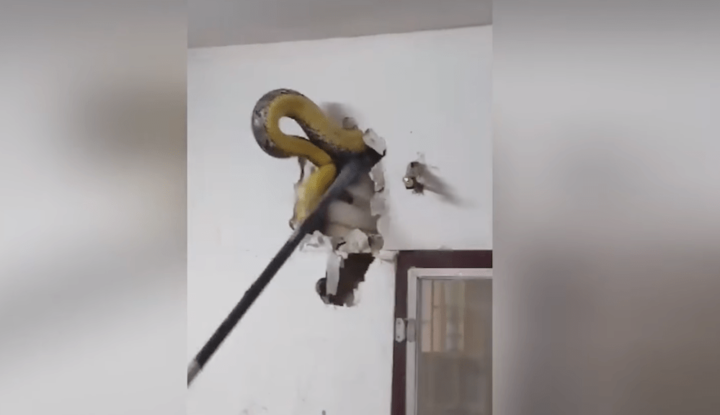 Furcsa zajokat hallott, kiderült, hogy egy 4,5 méteres kígyó él a nappalija falában - videó