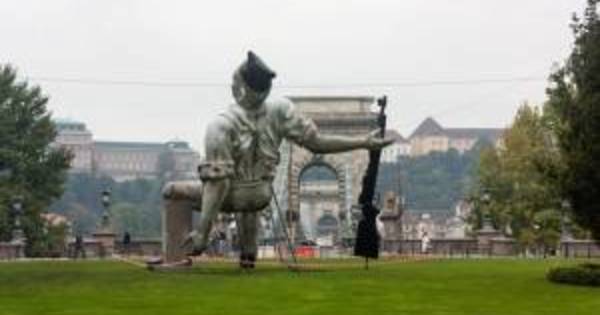 Robert Capa ikonikus fotójának katonájával egy hónapon át találkozhatunk a Lánchíd pesti hídfőjénél.