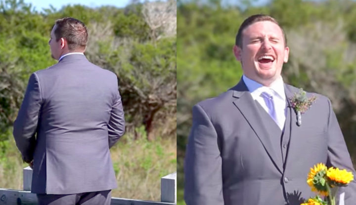 Régi babona az, mely szerint balszerencsét jelent, ha a vőlegény az esküvő előtt meglátja a menyasszonyi ruhát. Így aztán az egy igazán emelkedett pillanat, amikor először megpillantja a férfi a választottját talpig fehérben. Nem meglepő módon ez az esküvői fotósok, videósok egyik kedvenc témája.