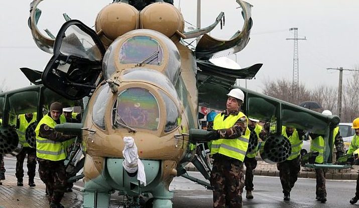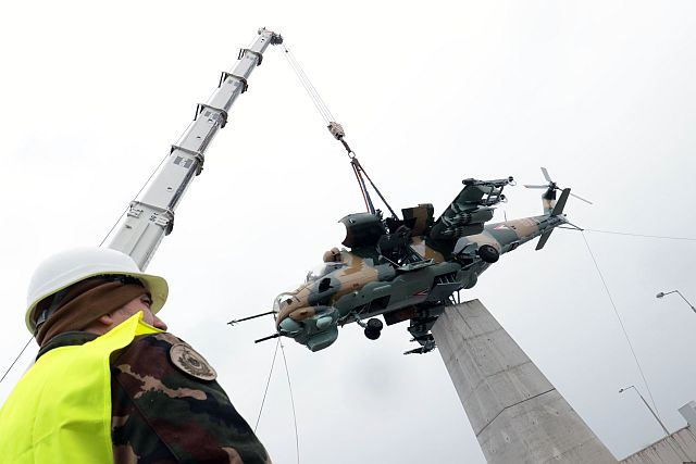 Még januárban kezdtek neki Szolnokon a körforgalom közepén található Mi-24 Helikopteres Emlékmű építésének, melyre a fő darab, maga a harci helikopter most került fel.