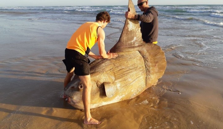 A képen egy holdhal (amit az angolok egy másik égitestről, a napról neveztek el Sunfishnek, latin neve Mola mola) látható, abból is egy rendes felnőtt példány, egy 1,8 méter hosszúra nőtt egyed – írja a 444.hu.