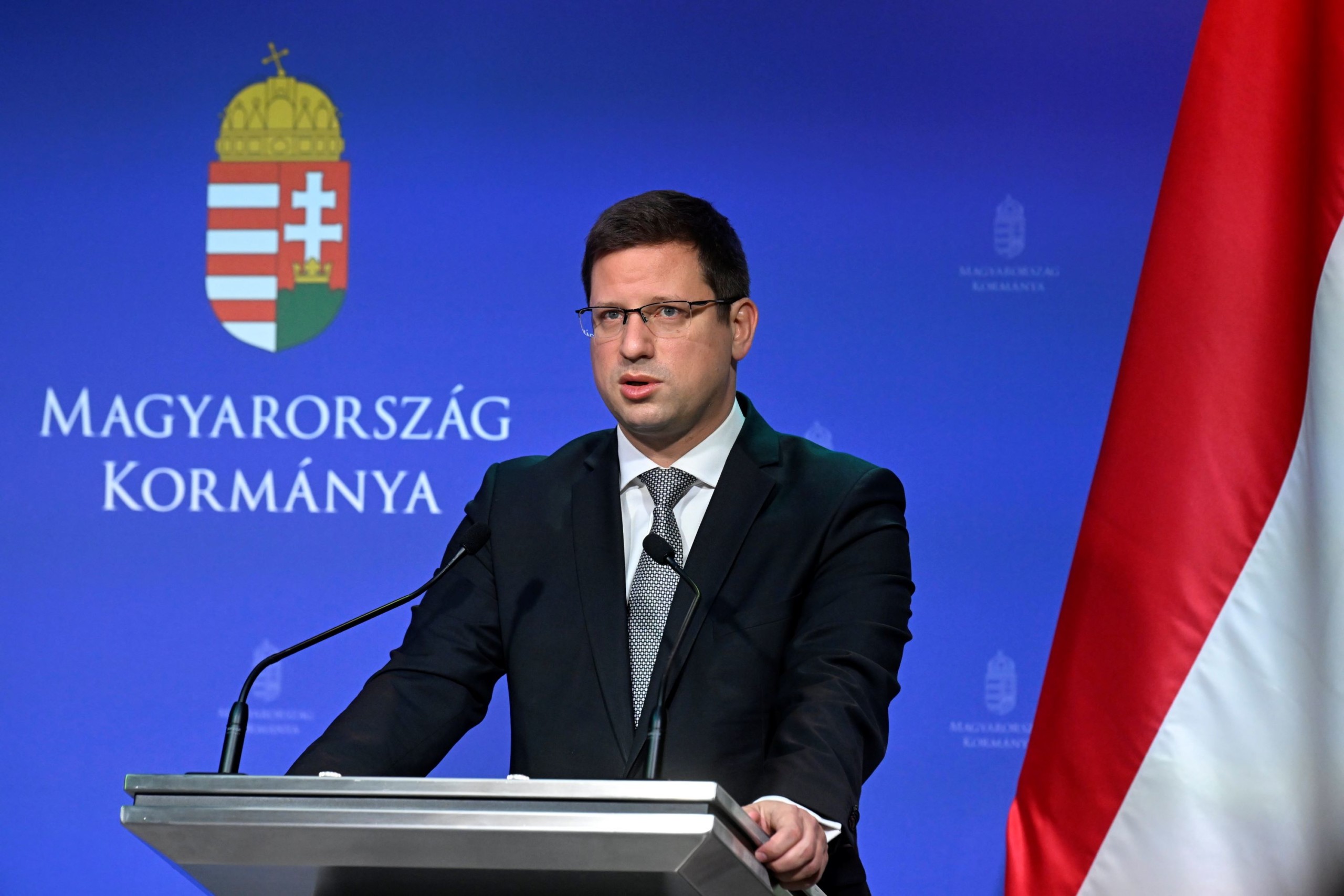 A szerdai “számtalan kormányzati döntés” közül a “legfontosabbakat” ismertette Gulyás Gergely a csütörtöki kormányinfón. A tanárok béremeléséről azt mondta, a pedagógusok legkésőbb hétfőn már a megemelt illetményeket fogják megkapni. Bejelentette azt is, hogy újraindul az újszülöttek SMA-szűrése. Fotó: MTI/Kovács Tamás