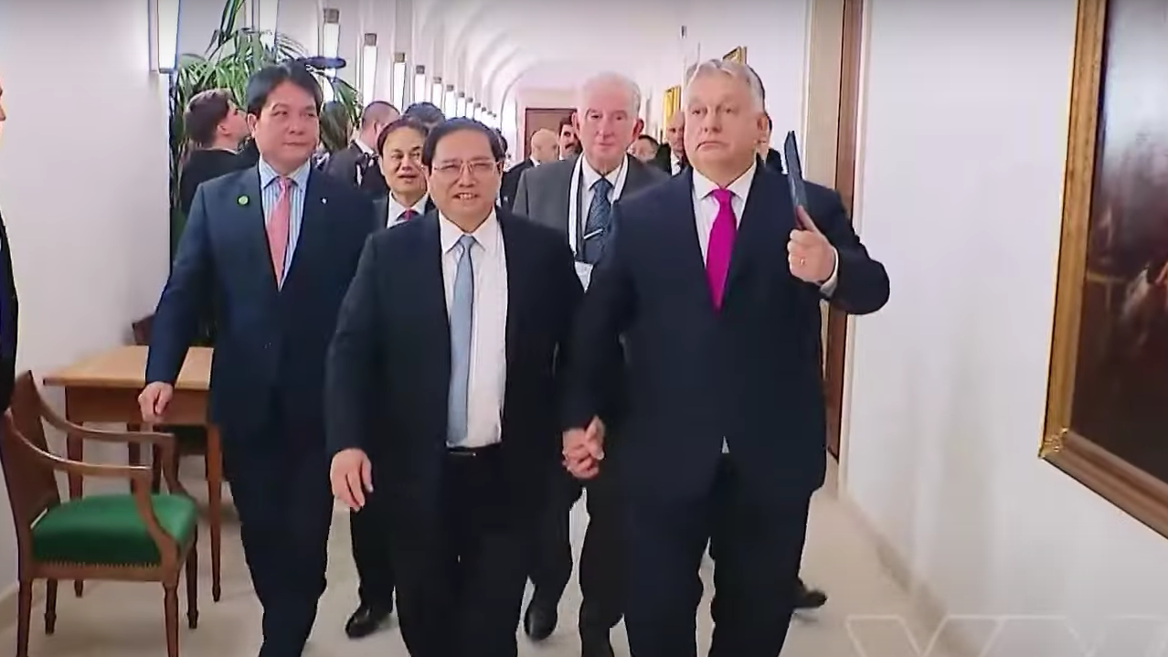 Orbán Viktor kéz a kézben sétált a vietnámi miniszterelnökkel. Pham Minh Chinh és Orbán Viktor budapesti találkozójáról készült felvételen látható, ahogy a miniszterelnökök kézen fogva sétálnak a Karmelitában. Vietnámban teljesen elfogadott, ha barátok így mutatkoznak a nyilvánosság előtt, politikusok körében ugyanakkor azért nem mindennapi az eset. Fotó: VTV4 / Youtube