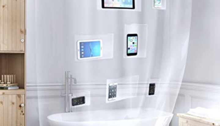 És mi lenne, ha összekapcsolnánk a kettőt? Zuhanyzás közben a telefon vagy a tablet képernyőjét nézni? Naná, hogy van rá megoldás! A Better Than Bubbles átlátszó zuhanyfüggönye a különböző méretű eszközökre optimalizált külső zsebekkel készül, így azokba bújtatva a kütyüt folyathatod magadra a vizet akár fél órán keresztül, nem lesz nedves a készülék.