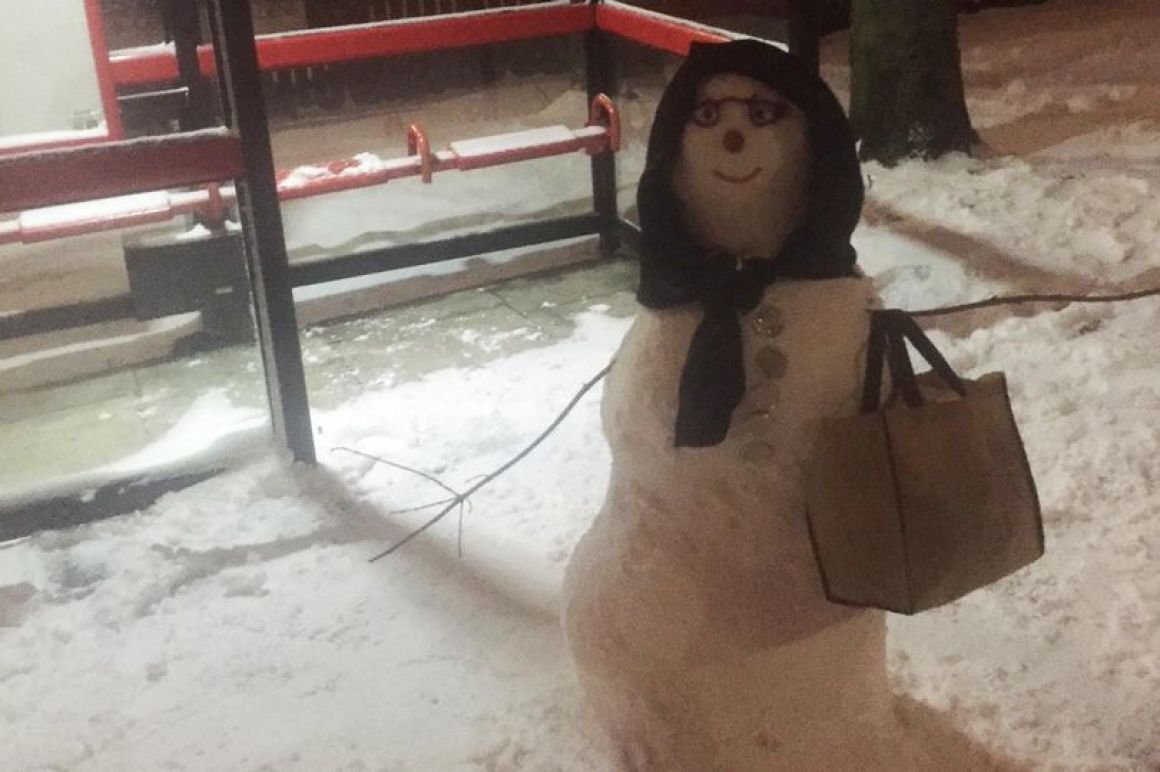 Brenda egy hóember volt. Rachael Bell építette hároméves kislányának, Laylának. Egy buszmegállóban állt öreg néninek öltöztetve.