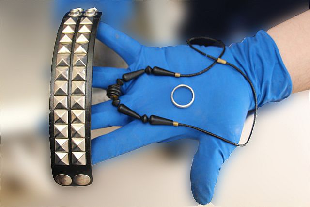 A férfi a halálakor fekete-szürke kockás kabátot, barna színű mellényt, fekete-szürke melegítő felsőt, fekete pulóvert, fekete pólót, kék farmernadrágot és fekete cipőt viselt. Az elhunyt személy a csuklóján egy szegecsekkel kivert fekete bőr karkötőt, a nyakában egy fekete műanyag gyöngyökből kialakított nyakláncot, jobb kezének gyűrűs ujján egy szürke fémből készült karikagyűrűt viselt, zsebében egy fekete bőr kulcstartón 2 darab lakatkulcs és egy kis lakat volt.