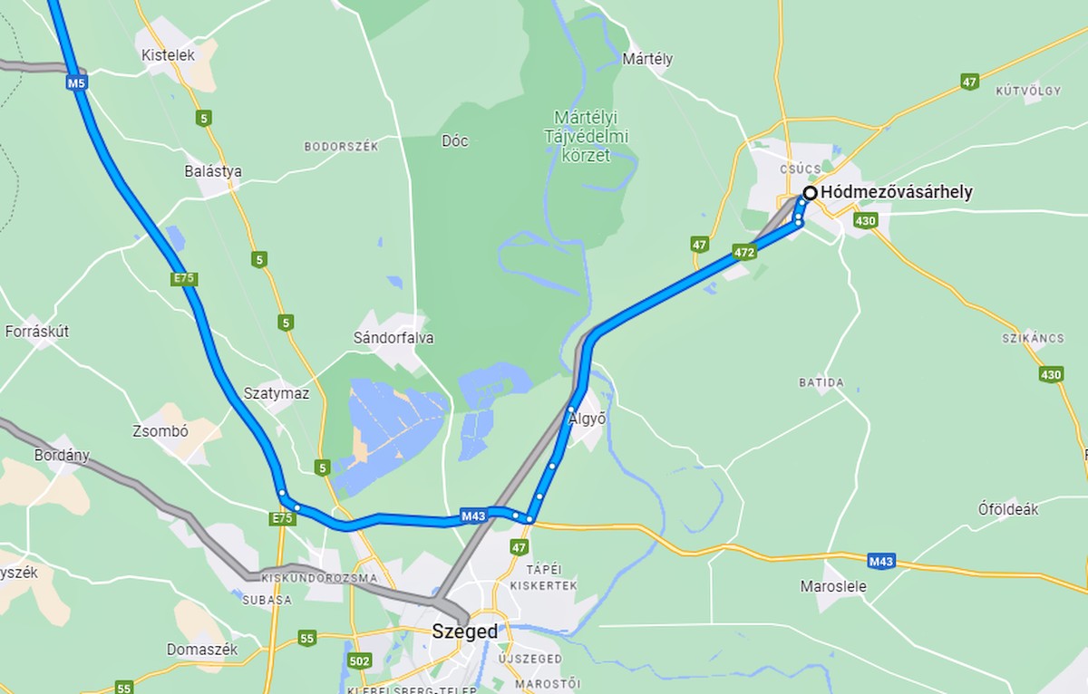 Hódmezővásárhelyről indul a katonai konvoj Fotó: Google Térkép