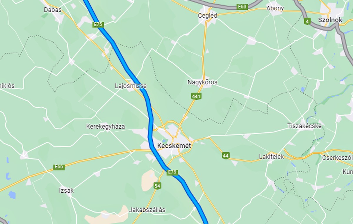 Az M5 kecskeméti szakasza térképen Fotó: Google Térkép