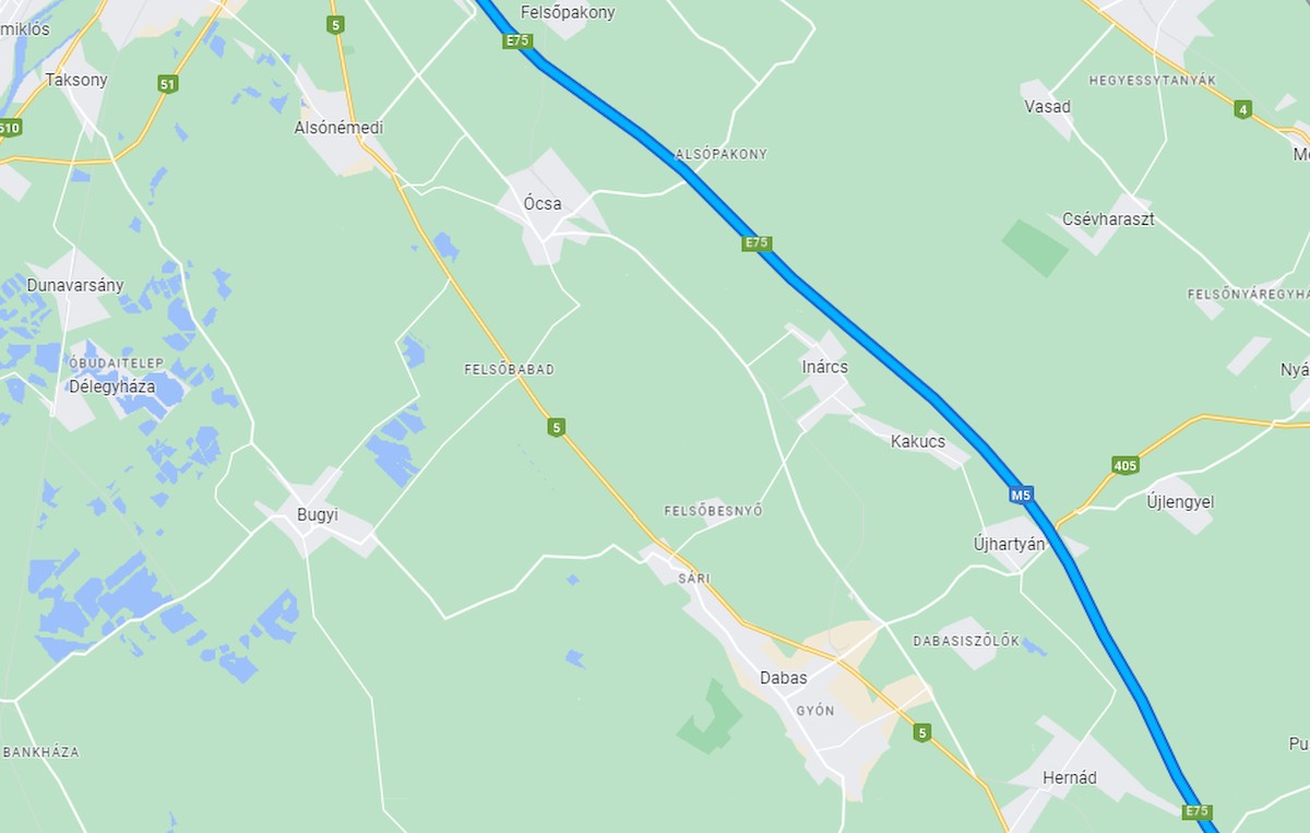 Az M5-ös Újhartyán térségében. Fotó: Google Térkép.