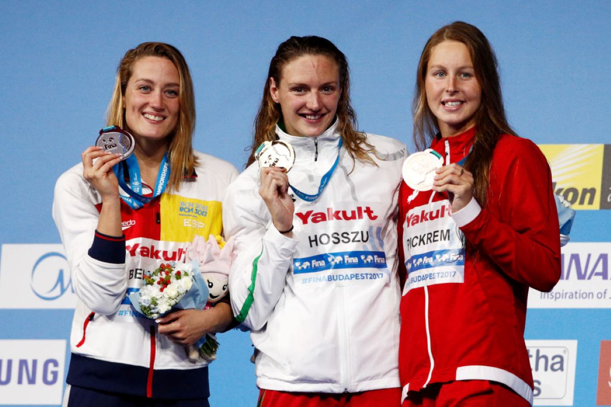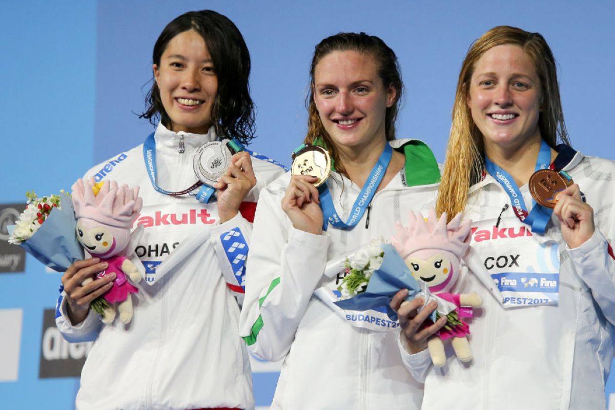 osszú Katinka 2017-ben megvédte címét 200 méter vegyesen a budapesti Duna Arénában rendezett úszó-világbajnokságon. A háromszoros olimpiai bajnok, aki a legjobb idővel jutott a döntőbe, 2:07.00 perces idővel nyerte meg a versenyt, maga mögé utasítva a japán Ohasi Juit és az amerikai Madisyn Coxot. Fotó: Getty Images